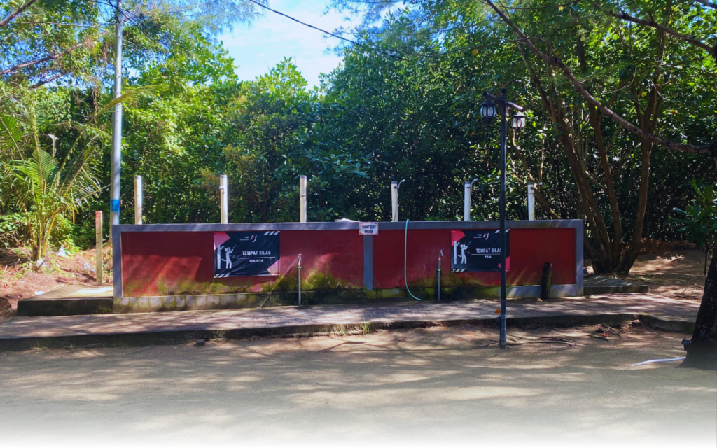 Ingin menikmati bermain di pantai sepuasnya? Tenang disini juga terdapat fasilitas toilet yang memadai dan area bilas. Jadi kamu bisa bermain dilaut sambil menikmati pemandangan yang menakjubkan sepuasnya.