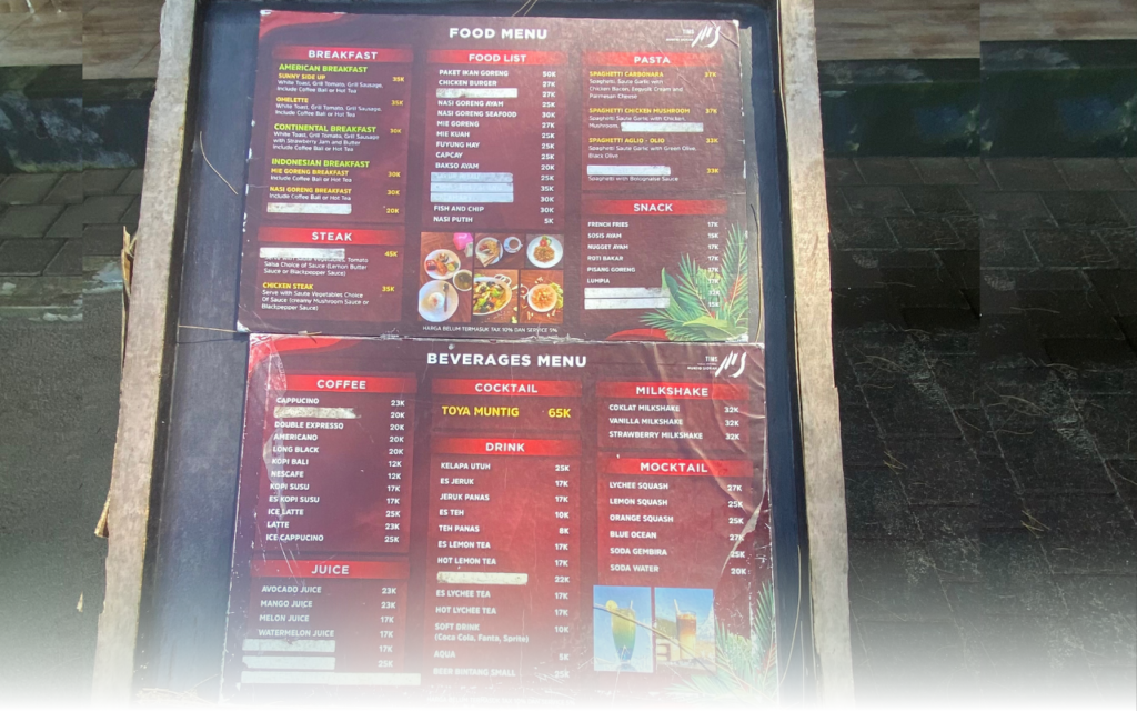 Selain bermain di pantai dan mencoba berbagai fasilitas serta spot foto-foto disana. Yang satu ini tentu tidak boleh kamu lewatkan, sangat tidak lengkap kalo kamu ga cobain makanan minuman yang ada disana. Yuk coba berbagai sajian khas Muntig Siokan sambil bersantai menikmati pemandangan laut yang menakjubkan. Hhmm yummy!